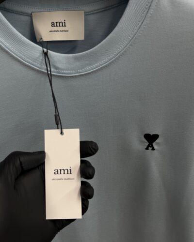 AMI Heart Logo Black T-Shirt light Blue