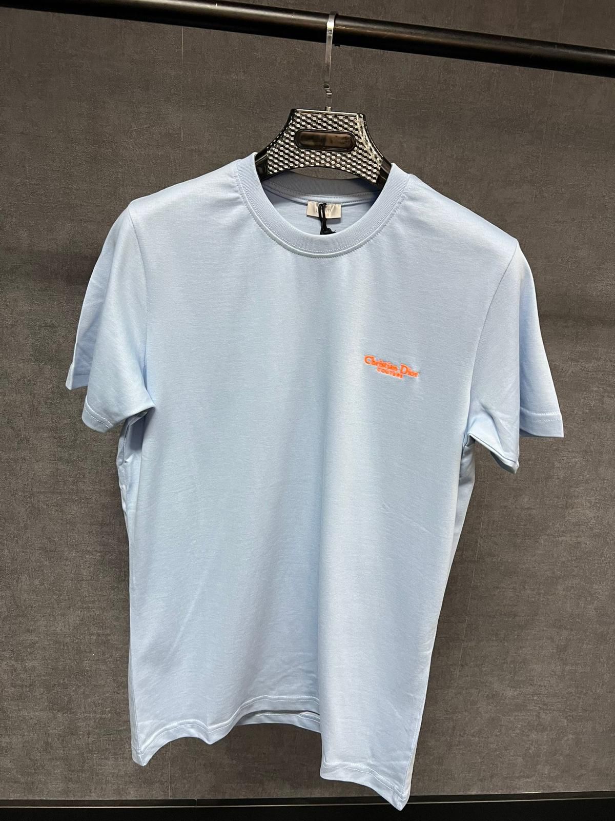 christian dior t_shirt light blue with orange logo